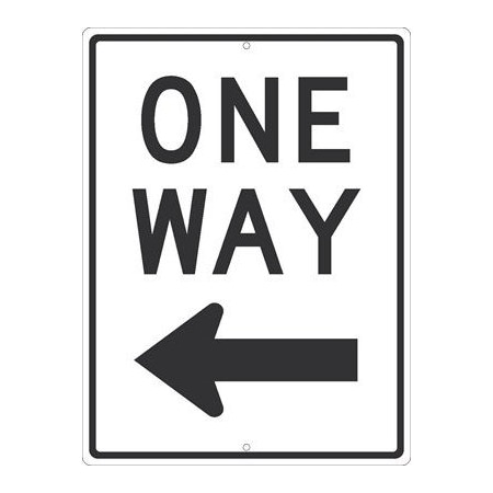 NMC TM510K ONE Way Sign – 18 in. x 24 in. Reflective Aluminum Traffic Sign with Left Arrow Graphic, Black Text/Graphic on White Base