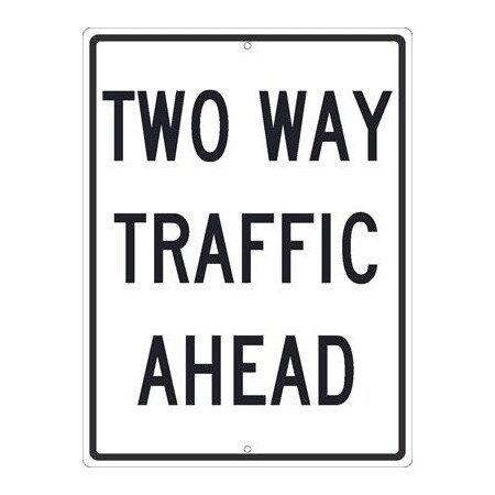 NMC TM517J Two Way Traffic Ahead Sign - 18 in. x 24 in. Heavy Duty Reflective Aluminum Traffic Sign, Black Text on White Base