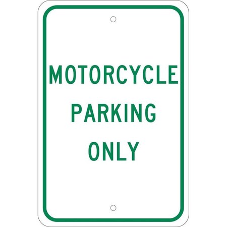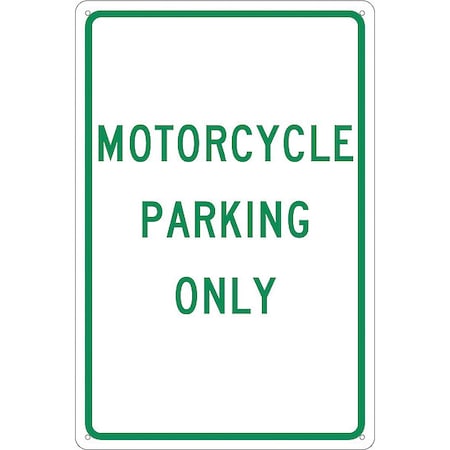 NMC TM53G Traffic Sign, Legend "MOTORCYCLE PARKING ONLY", 12" Length x 18" Height, 0.040 Aluminum, Green On White