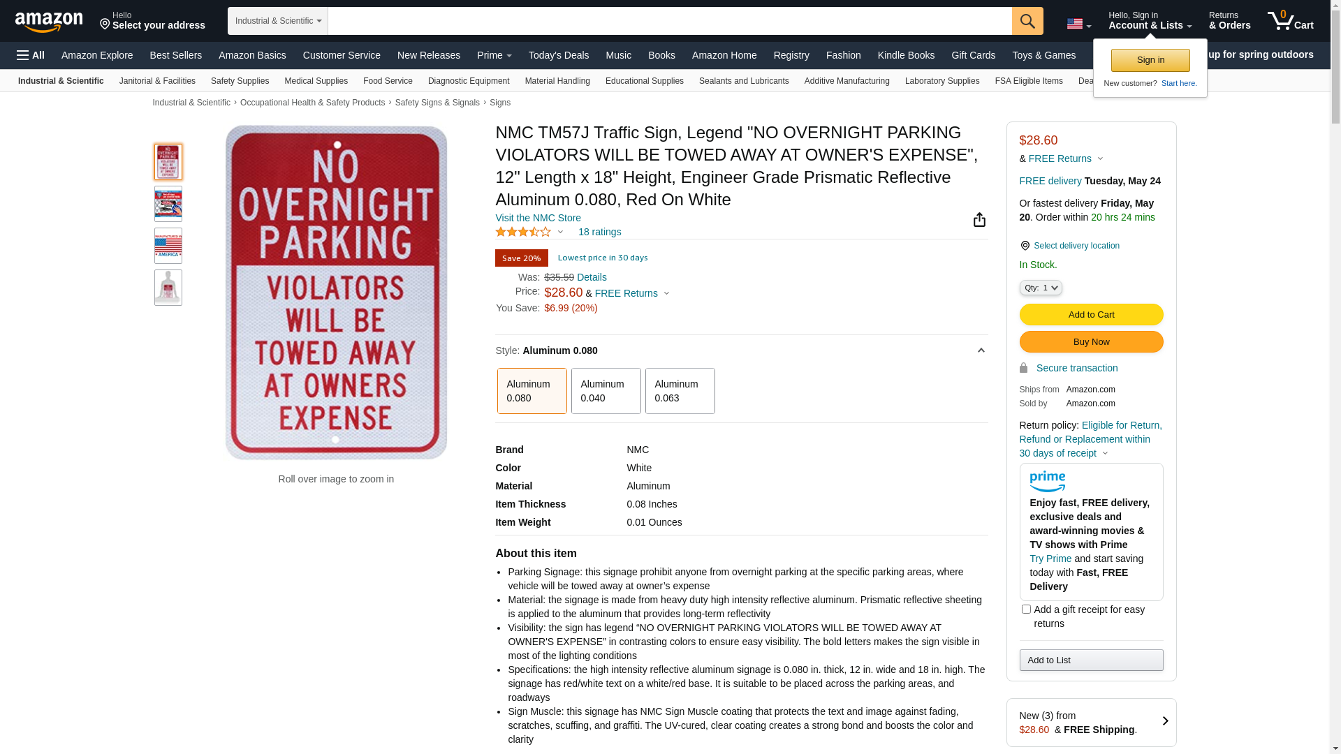 - Specifications: the high intensity reflective aluminum signage is 0.080 in. thick, 12 in. wide and 18 in. high. The signage has red/white text on a white/red base. It is suitable to be placed across the parking areas, and roadways