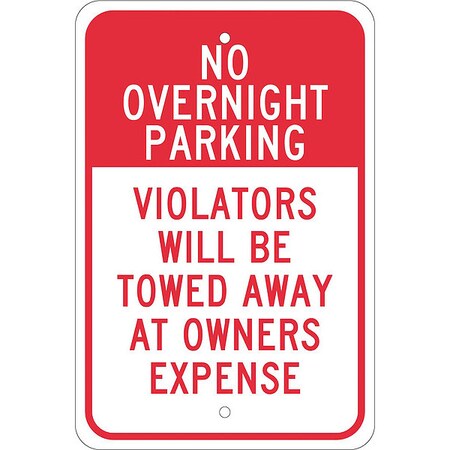 NMC TM57J Traffic Sign, Legend "NO OVERNIGHT PARKING VIOLATORS WILL BE TOWED AWAY AT OWNER'S EXPENSE", 12" Length x 18" Height, Engineer Grade Prismatic Reflective Aluminum 0.080, Red On White