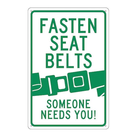 NMC TM60G Traffic Sign, Legend "FASTEN SEAT BELT SOMEONE NEEDS YOU!" with Graphic, 12" Length x 18" Height, 0.040 Aluminum, Green On White