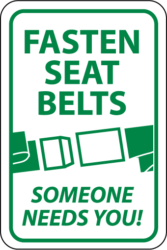- High Visibility: the legend “FASTEN SEAT BELTS – SOMEONE NEEDS YOU!” is printed in bold and legible text to ensure visibility even in poor lighting conditions. The seat buckle graphic makes the sign easy to understand