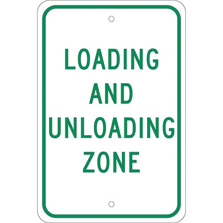 NMC TM61J Traffic Sign, Legend "LOADING AND UNLOADING ZONE", 12" Length x 18" Height, Engineer Grade Prismatic Reflective Aluminum 0.080, Green On White