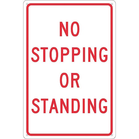 NMC TM67G Traffic Sign, Legend "NO STOPPING OR STANDING", 12" Length x 18" Height, 0.040 Aluminum, Red On White