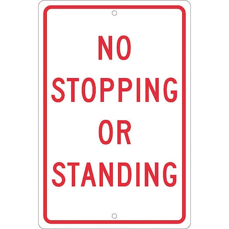 NMC TM67H Traffic Sign, Legend "NO STOPPING OR STANDING", 12" Length x 18" Height, 0.063 Aluminum, Red On White