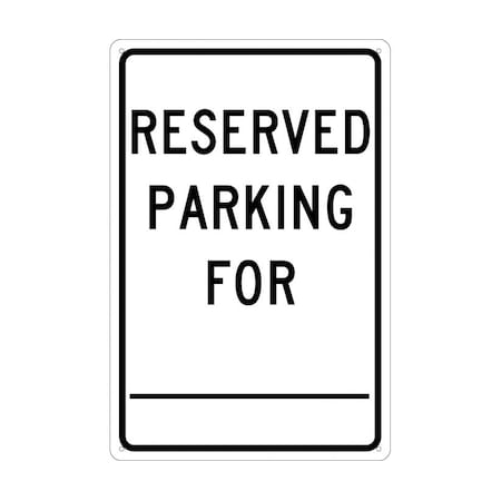 NMC TM6G Traffic Sign, Legend "RESERVED PARKING FOR", 12" Length x 18" Height, Aluminum 0.040, Black on White