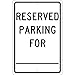 NMC TM6H Traffic Sign, Legend "RESERVED PARKING FOR", 12" Length x 18" Height, Aluminum 0.063, Black on White