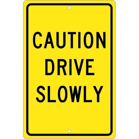 NMC TM72H Traffic Sign, Legend "CAUTION DRIVE SLOWLY", 12" Length x 18" Height, Aluminum 0.063, Black on Yellow