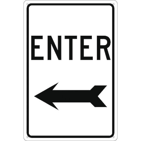 NMC TM77G Traffic Sign, Legend "ENTER" with Left Arrow, 12" Length x 18" Height, Aluminum 0.040, Black on White