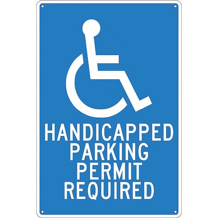 NMC TM84G Handicap Parking Sign, Legend "HANDICAPPED PARKING PERMIT REQUIRED" with Handicapped Symbol, 12" Length x 18" Height, Aluminum 0.040, White on Blue