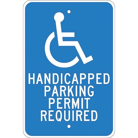 - Specifications: heavy duty reflective aluminum signage is 0.080 in. thick, 12 in. wide and 18 in. high. This rectangular parking sign has white text on a blue base. This graffiti proof sign has a wheelchair graphic to reinforce the message