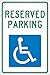 - High Visibility: the sign shows the graphic, and legend “RESERVED PARKING” in clear, bold letters to ensure maximum visibility. The sign has a wheelchair graphic to reinforce the message