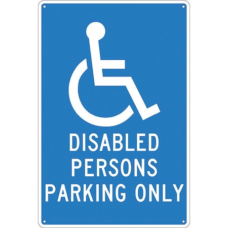 NMC TM93G Handicap Parking Sign, Legend "DISABLED PERSONS PARKING ONLY" with Handicapped Symbol, 12" Length x 18" Height, Aluminum 0.040, White on Blue