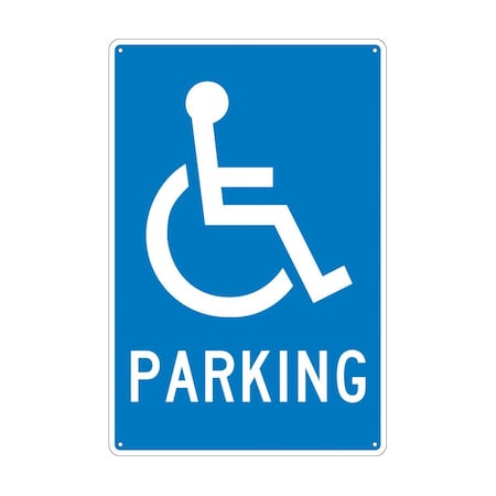 NMC TM94G Handicap Parking Sign, Legend "PARKING" with Handicapped Symbol, 12" Length x 18" Height, Aluminum 0.040, White on Blue