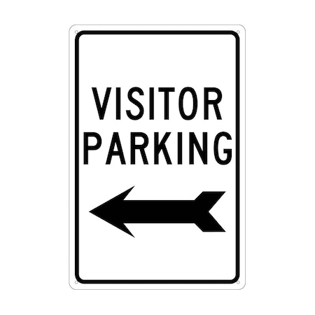 NMC TM9G Traffic Sign, Legend "VISITOR PARKING" with Left Arrow, 12" Length x 18" Height, Aluminum 0.040, Black on White