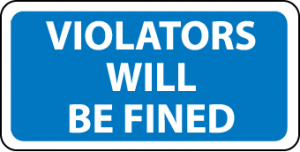 NMC TMA3G Traffic Sign, Legend "VIOLATORS WILL BE FINED", 6" Length x 12" Height, Aluminum 0.040, White on Blue
