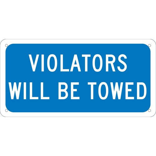 6 x12 Standard Aluminum Violators Will Be Towed Sign