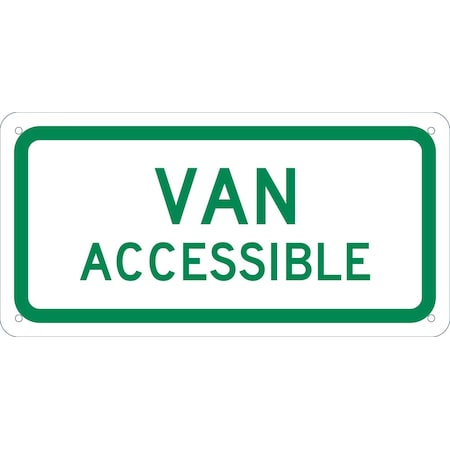 NMC TMAS11G Van ACCESSIBLE Sign – 12 in. x 6 in. Standard Aluminum Parking Sign with Green Text on White Base