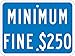 9 x12 Heavy Duty Reflective Aluminum Minimum Fine $250 Sign California