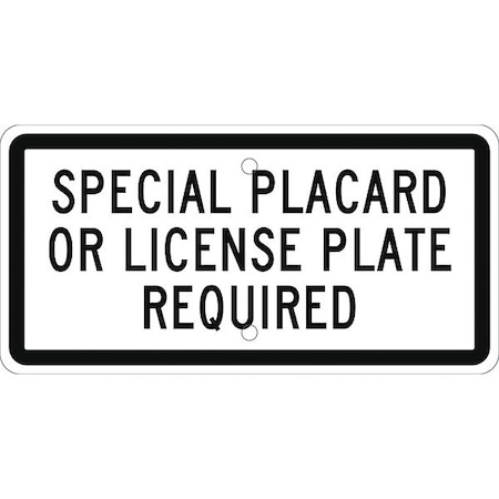NMC TMAS13H"Special Placard or License Plate Required" Plaque Sign, 0.063 Aluminum, 6" x 12"