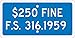 NMC TMAS18H "$250 Fine F.S. 316.1959" Plaque Sign, 0.063 Aluminum, 6" x 12"