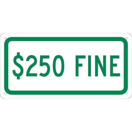 NMC TMAS19G"$250 Fine" Plaque Sign, 0.040 Aluminum, 6" x 12"