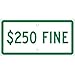 - Parking Signage: the sign informs about a minimum fine of $250. It is often used in the reserved parking for handicap people, ensuring drivers are aware about which areas are not meant for parking and a violation would result in a minimum fine of $253