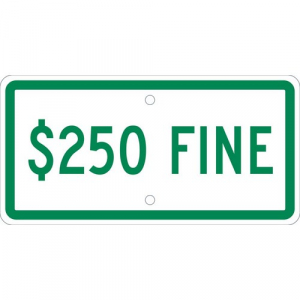 - Highly Visible: the legend “$250 FINE MINIMUM” is printed in bold and legible text to ensure clear visibility even from a distance and in poor lighting conditions