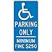 - Visibility: the sign shows the graphic, and legend “PARKING ONLY - MINIMUM FINE $250” in clear, bold letters and contrasting colors to ensure clear visibility. The reflective sheeting makes the sign visible in most lighting conditions