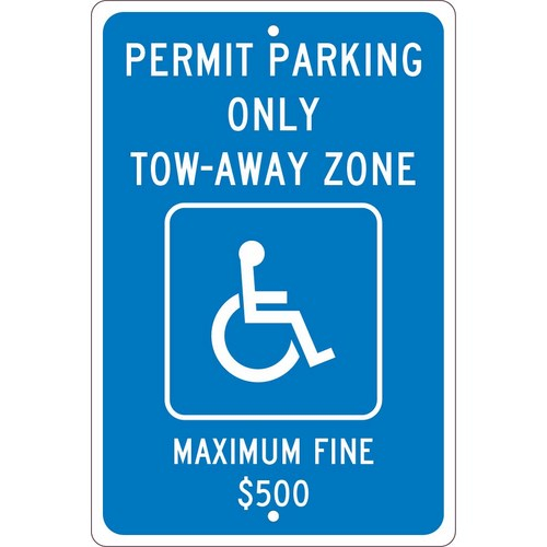 18 x12 All Purpose Aluminum Permit Parking Only Tow-Away Zone Maximum Fine $500 Sign Georgia