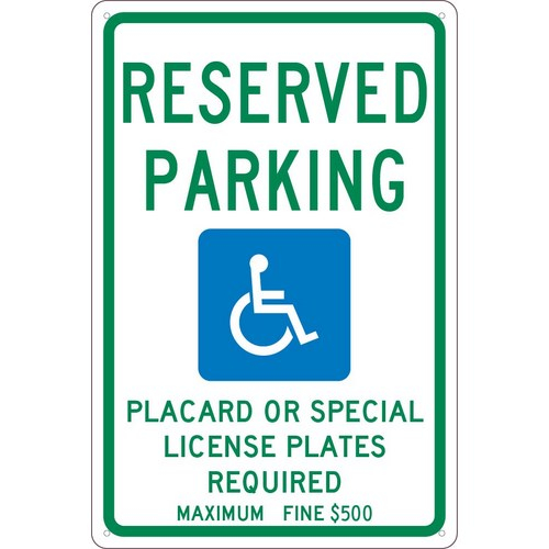 NMC TMS315G"Reserved Parking Handicapped" Hawaii Sign, 0.040 Aluminum, 18" x 12"
