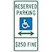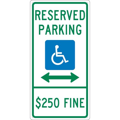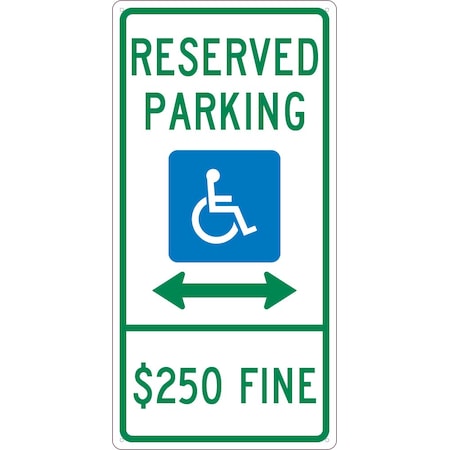 RESERVED PARKING HANDICAPPED , $250 FINE, 24X12, .040 ALUM SIGN