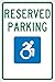 - Visibility: the sign shows the graphic, and legend “RESERVED PARKING” in clear, bold letters to ensure clear visibility. The sign with blue graphic is visible in most lighting conditions