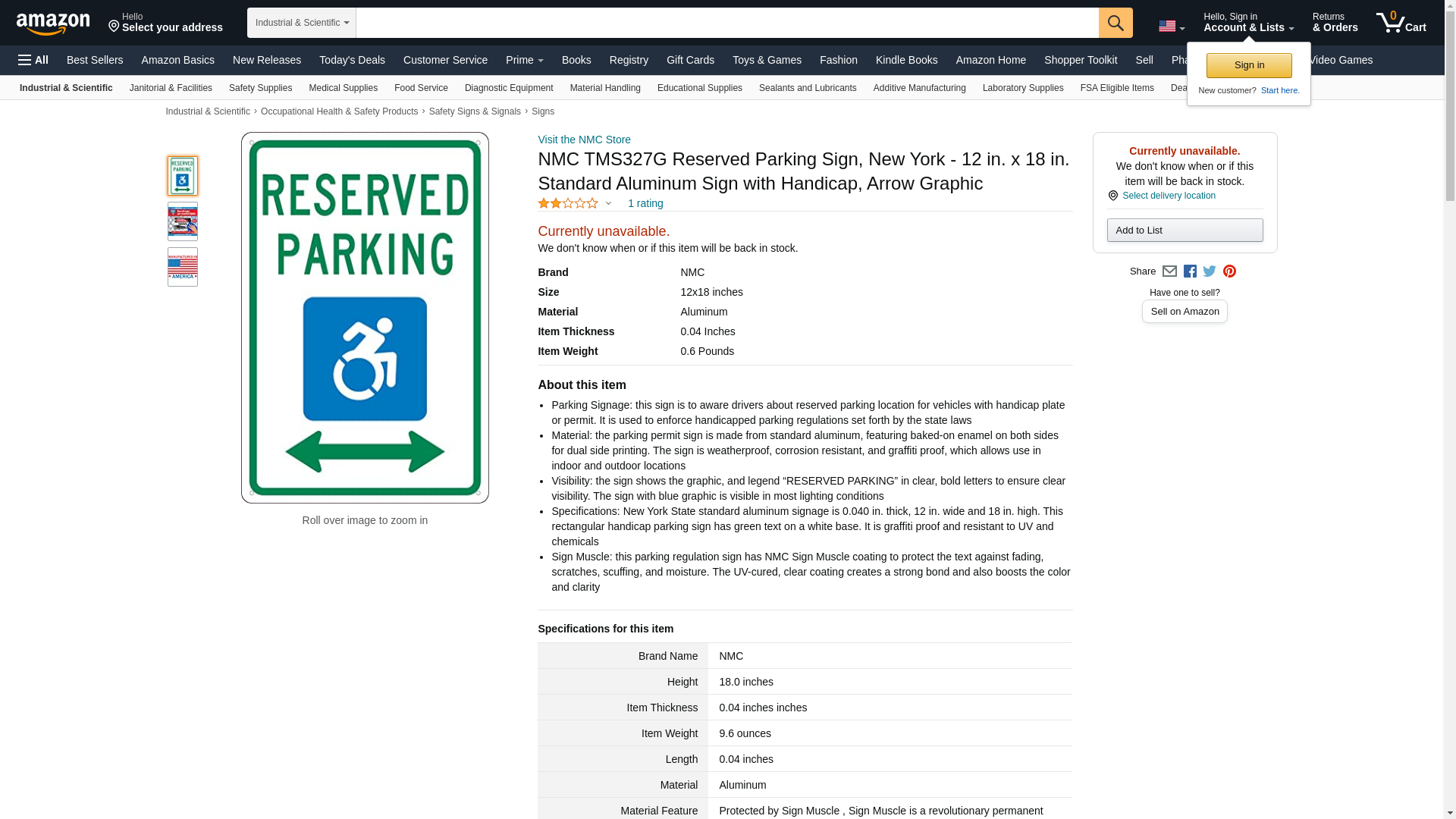 - Specifications: New York State standard aluminum signage is 0.040 in. thick, 12 in. wide and 18 in. high. This rectangular handicap parking sign has green text on a white base. It is graffiti proof and resistant to UV and chemicals