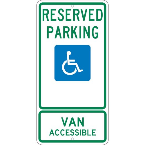 Traffic & Parking Signs; MessageType: ADA Signs ; Message or Graphic: Message & Graphic ; Legend: Reserved Parking Van Accessible ; Graphic Type: Handicap Symbol ; Reflectivity: Engineer Grade ; Material: Aluminum