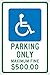 - Visibility: the sign shows the handicap graphic, and legend “PARKING ONLY – MAXIMUM FINE $500” in clear, bold letters to ensure clear visibility. The sign is visible in most lighting conditions