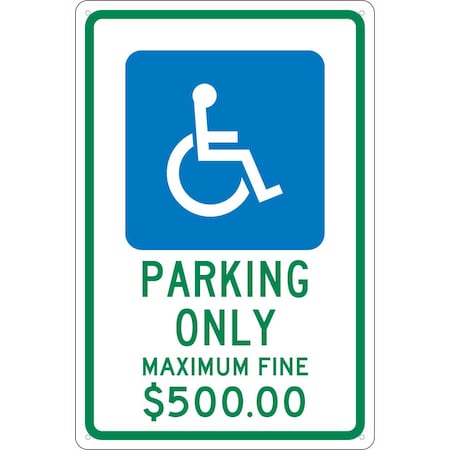 NMC TMS331G Parking ONLY – Maximum FINE $500 Sign, Ohio - 12 in. x 18 in. Standard Aluminum Sign with Handicap Graphic