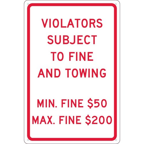 12X18" .04 AL RED/WHT Violator SUBJ FINE Sign