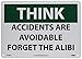 - Header "THINK and legend "ACCIDENTS ARE AVOIDABLE FORGET THE ALIBI"