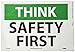 NMC TS110PB OSHA Sign, Legend "THINK - SAFETY FIRST", 14" Length x 10" Height, Pressure Sensitive Vinyl, Black on White