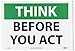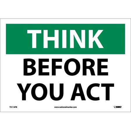 NMC TS114PB OSHA Sign, Legend "THINK - BEFORE YOU ACT", 14" Length x 10" Height, Pressure Sensitive Vinyl, Black on White