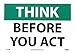 NMC TS114RB OSHA Sign, Legend "THINK - BEFORE YOU ACT", 14" Length x 10" Height, Rigid Plastic, Black on White