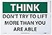 NMC TS119PB OSHA Sign, Legend "THINK - DON'T TRY TO LIFT MORE THAN YOU ARE ABLE", 14" Length x 10" Height, Pressure Sensitive Vinyl, Black on White