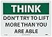 | Feature | Header "THINK and legend "DON\'T TRY TO LIFT MORE THAN YOU ARE ABLE" |