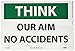 NMC TS122PB OSHA Sign, Legend "THINK - OUR AIM NO ACCIDENT", 14" Length x 10" Height, Pressure Sensitive Vinyl, Black on White