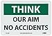 NMC TS122R OSHA Sign, Legend "THINK - OUR AIM NO ACCIDENT", 10" Length x 7" Height, Rigid Plastic, Black on White
