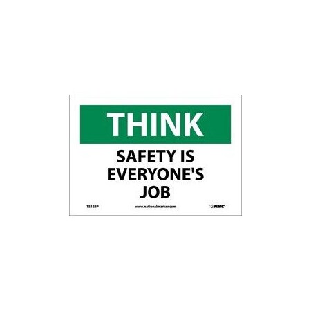 NMC TS123P THINK - SAFETY IS EVERYONE'S JOB Sign – 10 in. x 7 in. Pressure Sensitive Vinyl General Safety Sign with White/Black Text on Green/White Base
