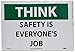 NMC TS123PB THINK - SAFETY IS EVERYONE'S JOB Sign – 14 in. x 10 in. Pressure Sensitive Vinyl General Safety Sign with White/Black Text on Green/White Base