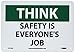 NMC TS123R THINK - SAFETY IS EVERYONE'S JOB Sign – 10 in. x 7 in. Rigid Plastic General Safety Sign with White/Black Text on Green/White Base